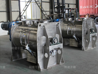 該機(jī)型由傳動(dòng)機(jī)構(gòu)、臥式筒體、犁刀、飛刀四部分組成,物料在犁刀作用下沿筒壁作軸向流支,當(dāng)物料流經(jīng)飛刀時(shí)被高速度旋轉(zhuǎn)的飛刀拋灑,從而在較短時(shí)間內(nèi)達(dá)到均勻混合。