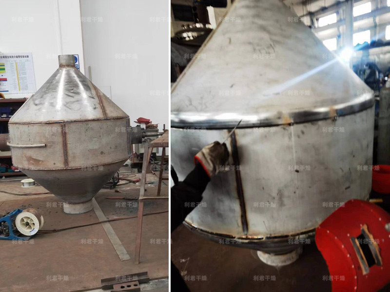 ◎在動(dòng)力驅(qū)動(dòng)下,罐體作緩慢旋轉(zhuǎn),罐內(nèi)物料不斷地混合,從而達(dá)到強(qiáng)化干燥的目的。